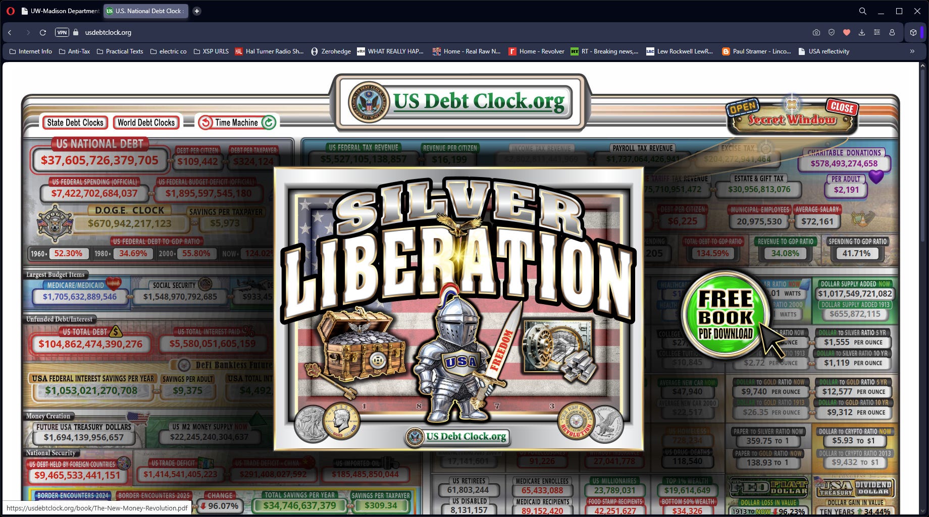 USdebtclock.org secret window graphic was redone last week, today new secret window displayed...Silver Liberation eh? Who was holding it Hostage that it needed to be liberated? NobodyOct 14, 2025Share… the Circus Continues… Accountability IS THE REVOLUTION!